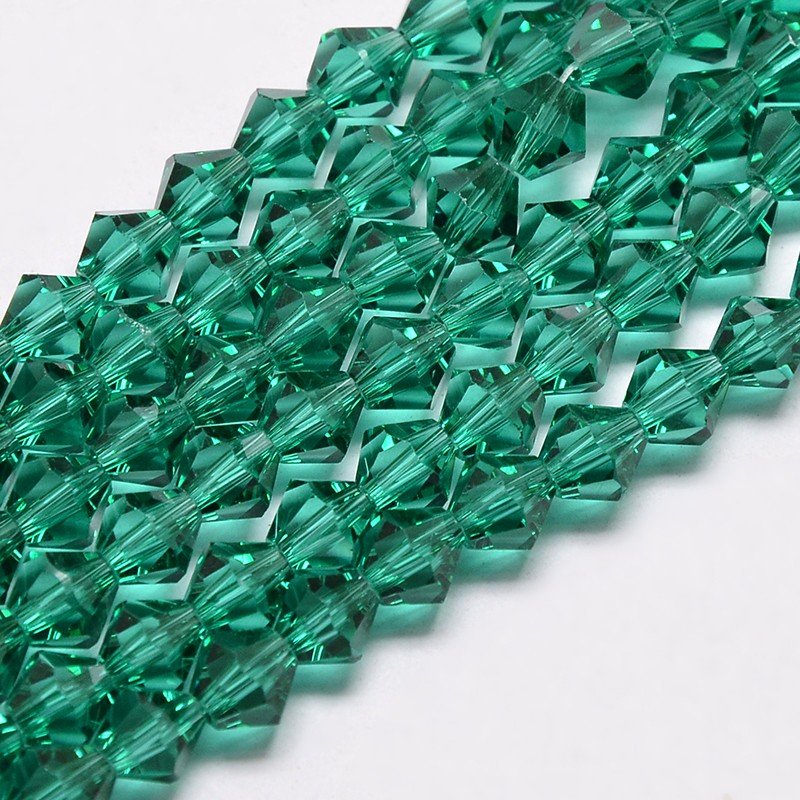 Tags: bikonisk, cyan, facet, glas, glasperler, green, grøn, krystal, perle