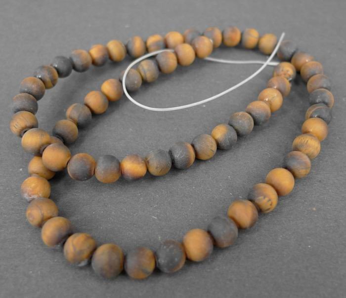 En streng perler i frostet tigereye.
