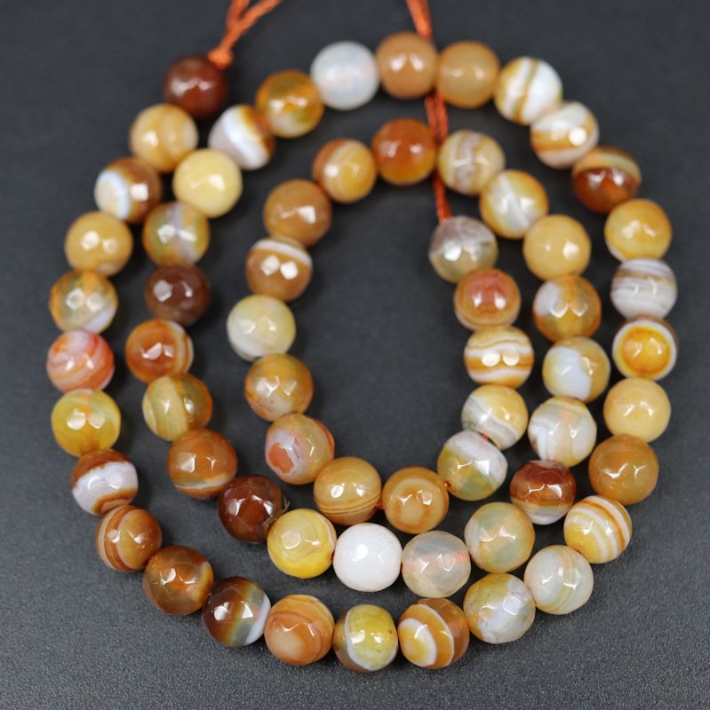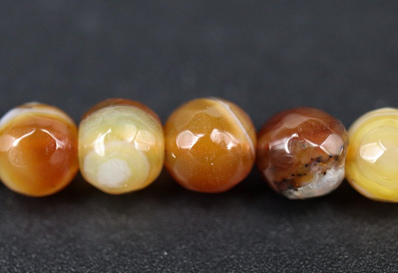 En streng runde facetterede perler i fireagat.