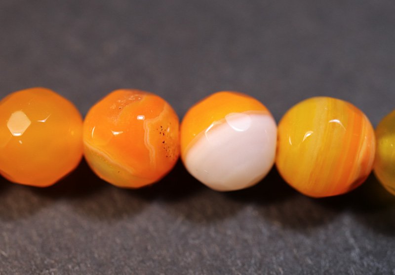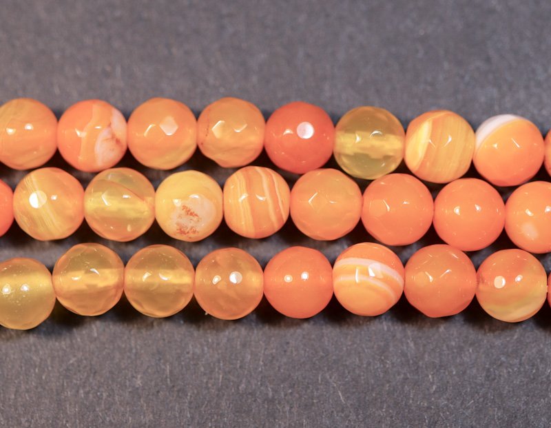 En streng runde facetterede perler i fireagat. (Indfarvet og varmebehandlet)